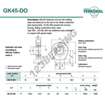 La Rótula Tpn conocida como GK45-DO-DURBAL DURBAL tiene un diámetro interior de 45 mm, un diámetro exterior de 102 mm y un espesor de 32 mm.