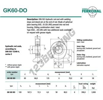La Rótula Tpn conocida como GK60-DO-DURBAL DURBAL tiene un diámetro interior de 60 mm, un diámetro exterior de 135 mm y un espesor de 44 mm.