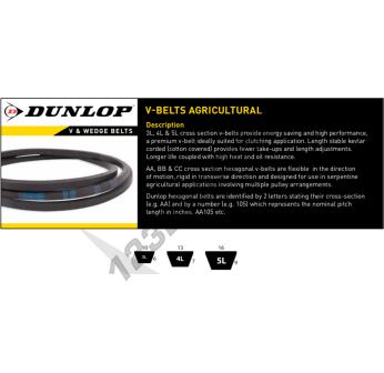 La correa 4L350K-DUNLOP de la familia de Correa Trapecial Clásica, marca DUNLOP, y perfil 4L. Tiene una 12.70mm x 9mm con una longitud interna de 839 mm, una longitud externa de 889 mm, y una longitud primitiva de mm.
